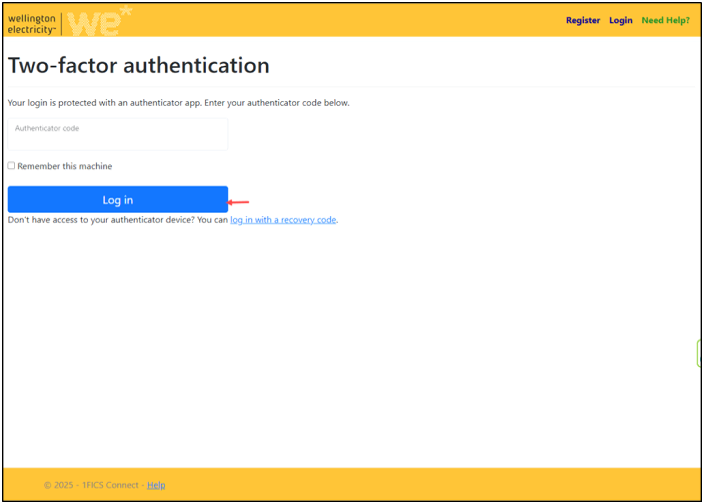 From your own PC/Laptop go to URL WE1FiCS.com 1FICS Connect MFA - Wellington Electricity to Register the Multi-Factor Authentication (MFA).