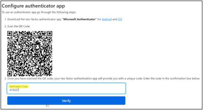 When you scan the QR code a Verification Code will be sent to the device that you previously installed the Authentication App on.