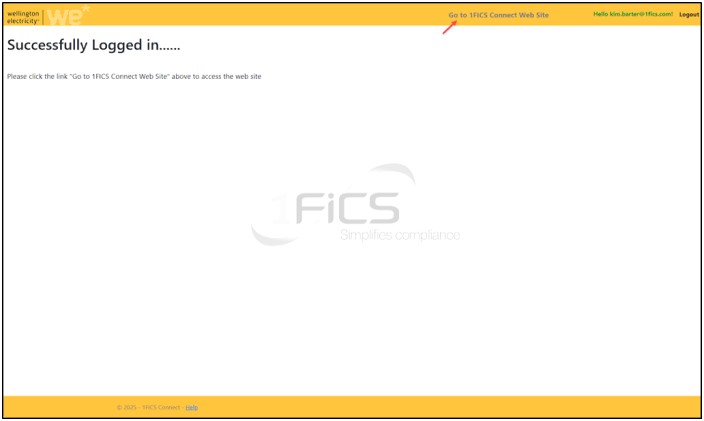 When you have successfully Logged into your MFA, you will see the option at the top of the screen to ‘Go to 1FiCS Connect Web Site’. Click on this link and WE 1FiCS Live site will appear (see screenshot below).
