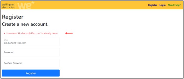 If you try and create a new account using the same email address the screen will display an error message as shown below.